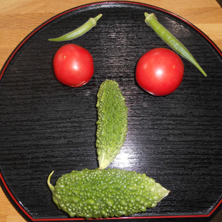 最後に……施設の畑で収穫された、野菜たちで顔を作りました!