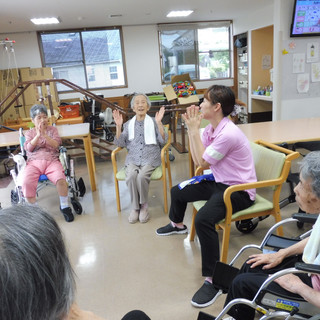 機能訓練では、職員だけでなく利用者様にも先生役をしていただくなど、役割を持って取り組んでいただいています。